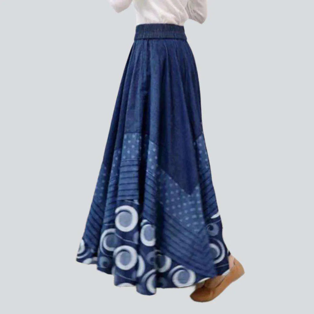 Bohemian dark long denim skirt | Jeans4you.shop