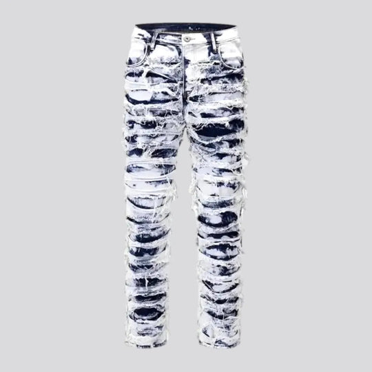 Distressed knees painted men's jeans
